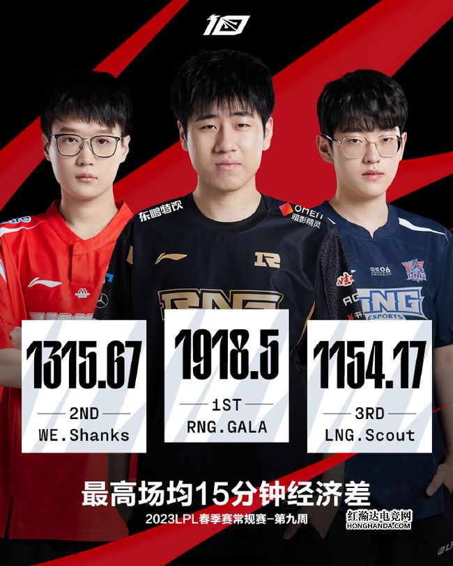 最高场均15分钟经济差:RNG.GALA