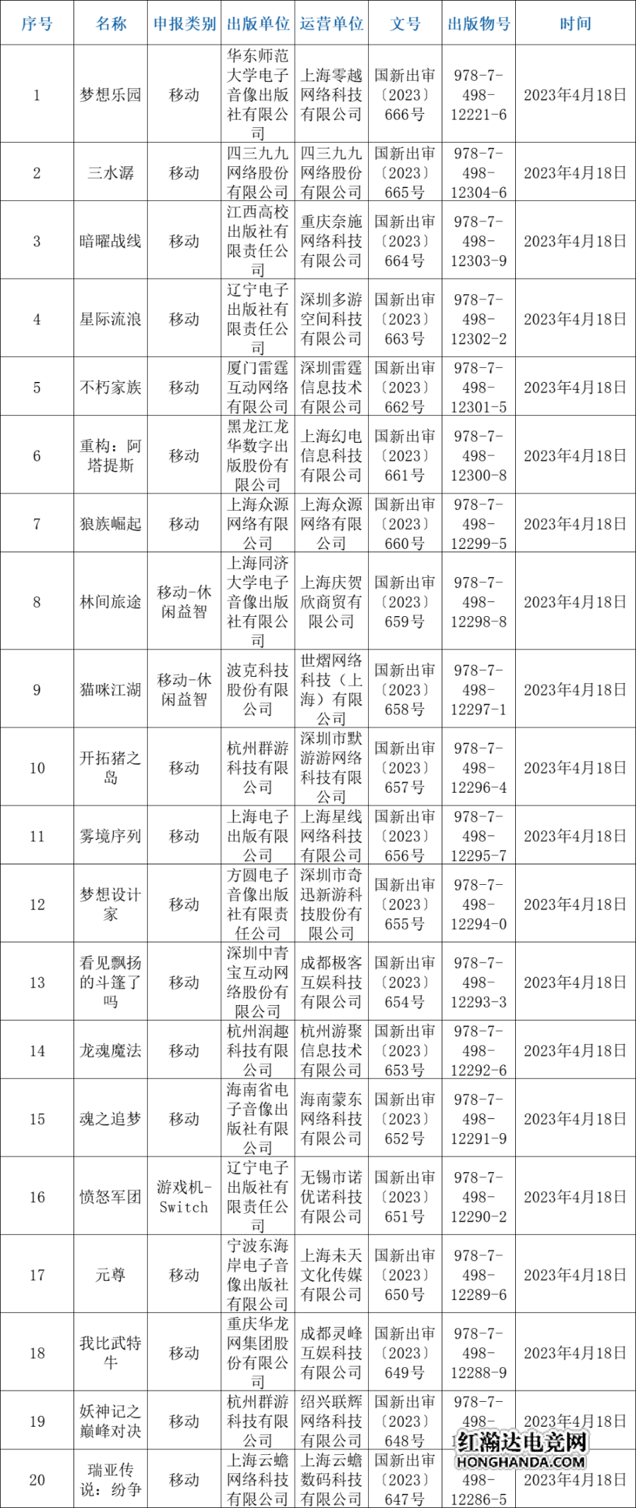 4 月 20 日,国家新闻出版署在官网公布了新一轮国产游戏过审版号,这是2023年的第四批版号。