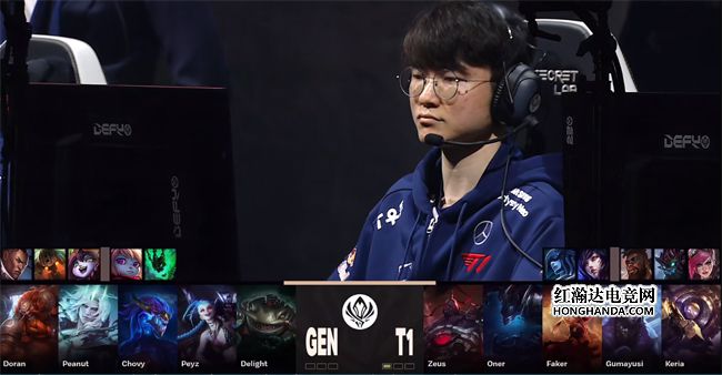 中期GEN野辅尝试包夹上路单带的安妮,Faker的安妮临危不乱,扭掉佛耶戈和塔姆的W,拖到队友的支援赶来,梦魇开大单防龙王,T1分割战场打出1换4,顺手打掉刚刚“上班”的大龙!T1回城补满状态直指上路高地,机器人越高地塔先手钩回塔姆,减员的GEN只能放掉上路水晶,经济落后来到7千。24分钟T1无压力解锁了土龙魂,拆掉GEN剩余外塔。Peanut的佛耶戈出高地拆眼时被机器人Q到直接“白给”,T1摧枯拉朽打出0换5团灭GEN一波结束比赛,送给GEN“玲珑塔”的同时2-0解锁赛点,距离胜者组决赛只差一步之遥!