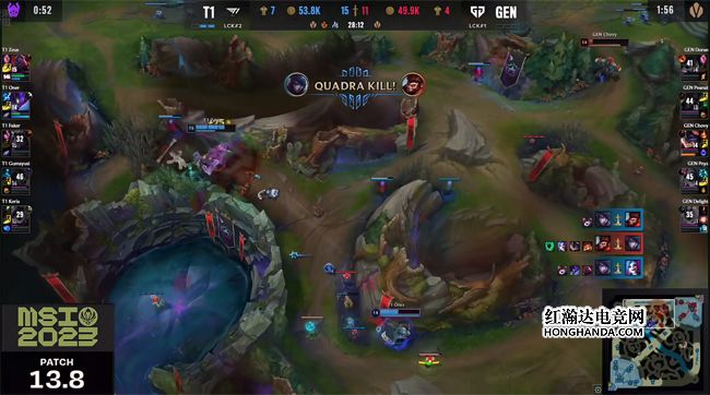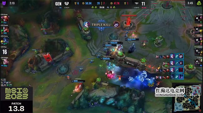 北京时间5月13日晚,2023MSI季中冠军赛胜败分组赛迎来胜者组第二轮,首场对决为今年LCK春决重演——GEN、T1强强对话!渴望复仇的T1今天的赛前准备明显比GEN更为充足,第一局前期“军训”下路打开了局面,虽然Chovy在第二局选出了龙王,但Keria的机器人帮助队伍滚起了优势雪球,最终T1有惊无险3-2复仇击败GEN,强势挺进胜者组决赛!