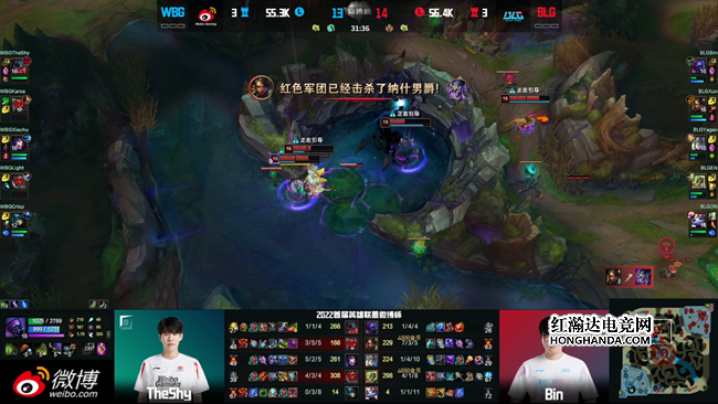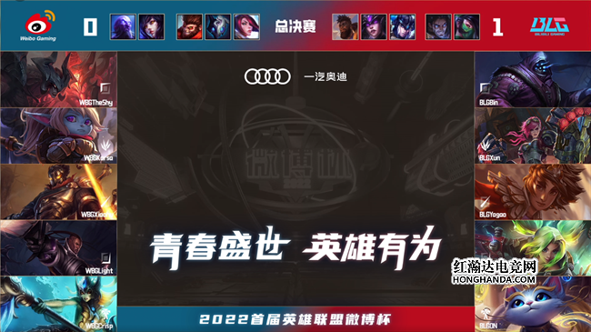 2022微博杯总决赛由WBG战队对阵BLG战队,两队棋逢对手展开空前激烈的巅峰对决,WBG战队凭借更胜一筹的团战发挥多次惊险翻盘逆袭BLG,最终以3-1的比分取得胜利,夺得首届微博杯冠军。