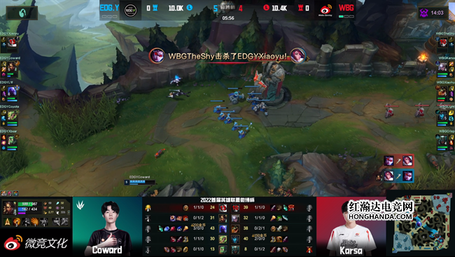 2022微博杯:TheShy冠军剑姬上路一打二,WBG兵不血刃3-0横扫EDG.Y