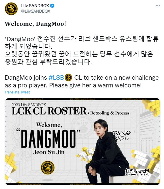 2023新赛季预计将在2023年1月开始,LCK赛区厉兵秣马,蓄势待发!近日LSB战队官宣:“DangMoo”全秀珍选手作为辅助加入LSB二队,她也成为韩国英雄联盟历史上首位转入职业的女选手!
