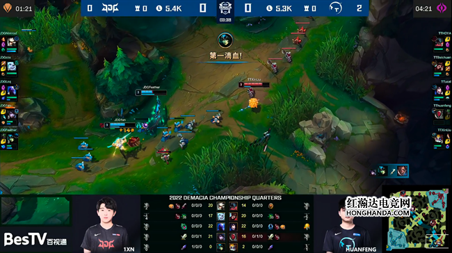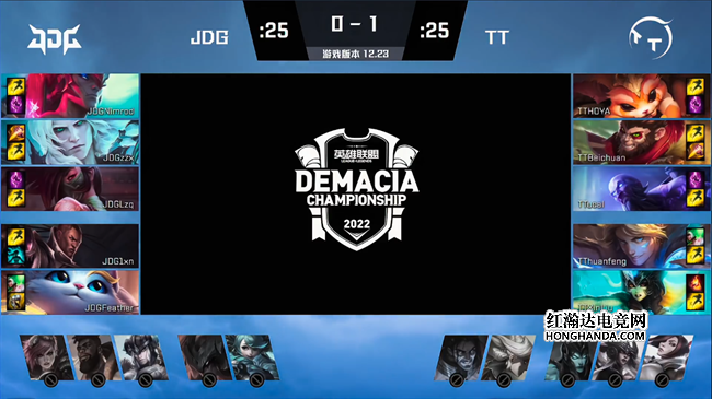 2022德玛西亚杯八强赛最后一场对决由TT战队对阵JDG战队,TT战队在新赛季引入S10亚军下路Huanfeng以后以全主力阵容出战德杯,而JDG战队派出了一套二队阵容,结果在完全体TT的面前毫无招架之力,连续三局被TT大比分碾压,最终TT 3-0轻取JDG顺利挺进四强。