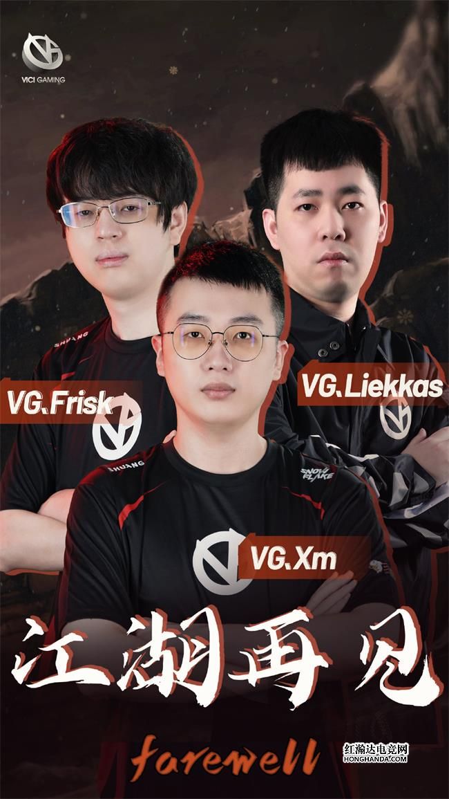 原VG电子竞技俱乐部DOTA2分部选手郭鸿铖(ID:Xm)@Xxmm-nmz 、潘义(ID:Frisk)@Frisk_乌龙院 以及教练王昱添(ID:Liekkas)的合约于TI结束后到期,三人目前均已离队。