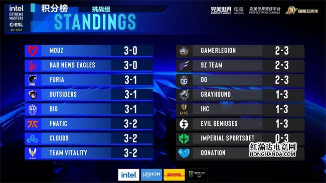 3胜1负晋级战队:BIG、Outsiders、FURIA