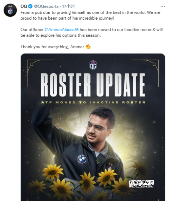 此前就有传闻称OG三号位选手ATF将会转会,今天OG官方发布了阵容调整公告,宣布队内三号位选手ATF进入不活跃状态。