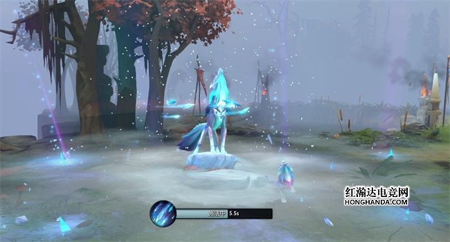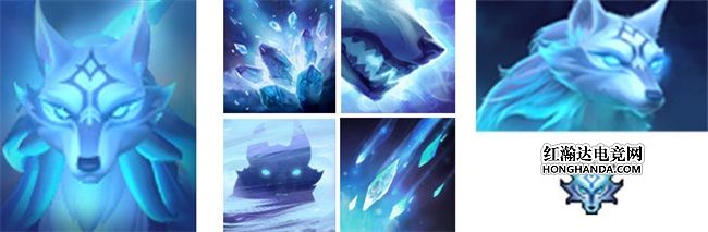 这个身心将完全替换水晶室女的原始模型和角色,变成满溢着蓝心魔法的永恒巨狼化身——还可以选择让一只幼狼紧紧跟着。并且给予了水晶室女拥有适合自选形态的全新动作。另外身心还包含全新英雄肖像、顶部肖像、小地图图标和技能图标。