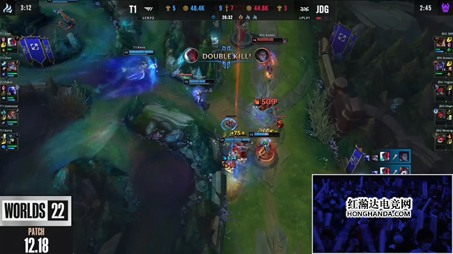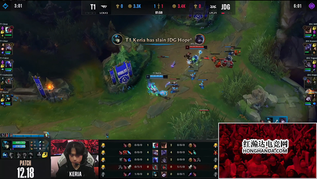 2022英雄联盟全球总决赛半决赛首场对决由LPL冠军JDG战队对上全球总决赛三冠王T1战队!胜者将获得第一张晋级S12决赛的门票。T1在首局失利以后继续围绕卢娜组合展开BP,给上中野选出一套边路非常强势的组合,通过极致的分推运营瓦解了JDG的阵型,最终稳扎稳打扳回一城,双方1-1回到同一起跑线。
