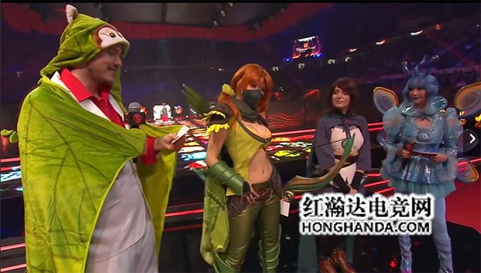 比赛中间穿插了Cosplays活动,不得不说现在DOTA的Coser真的可以以假乱真了,几位Coser作品甚至让人误以为是游戏中的全息投影。几位女Coser也是各个身怀绝技。