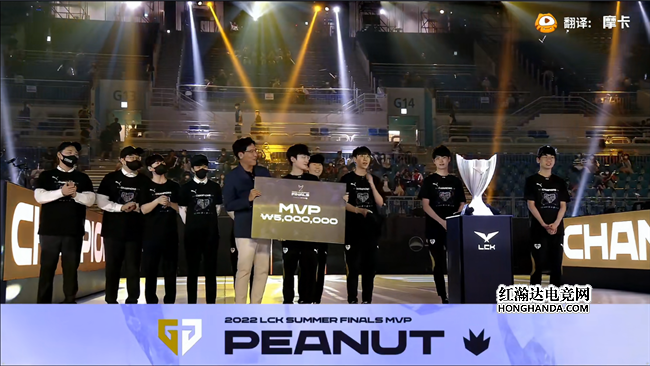 8月28日下午,2022 LCK夏季总决赛圆满落下帷幕,常规赛霸主Gen.G战队在决赛中用无可置疑的强势发挥3-0击败了春季赛卫冕冠军T1战队夺得冠军。这是Gen.G战队队史上的首座联赛冠军奖杯。也是Doran、Chovy、Ruler、Lehends四位选手的首次联赛冠军。这支由众多“万年亚军”选手所组成的队伍在这个夏天收获了职业生涯里最具重要意义的荣誉。打野选手Peanut凭借三局优异的表现被评选为今天决赛的MVP得主。