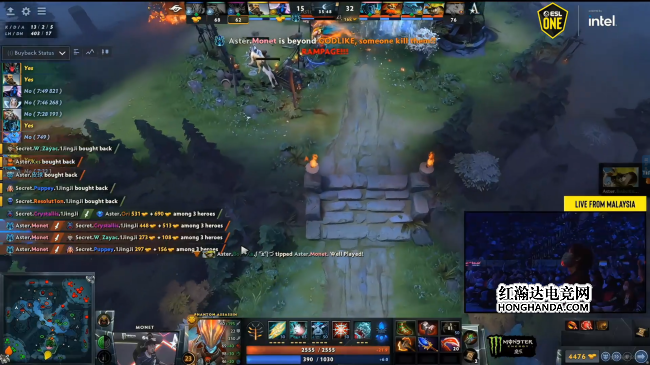 ESLONE马来西亚淘汰赛:Monet双暴走!Aster2-0击败Secret闯入决赛