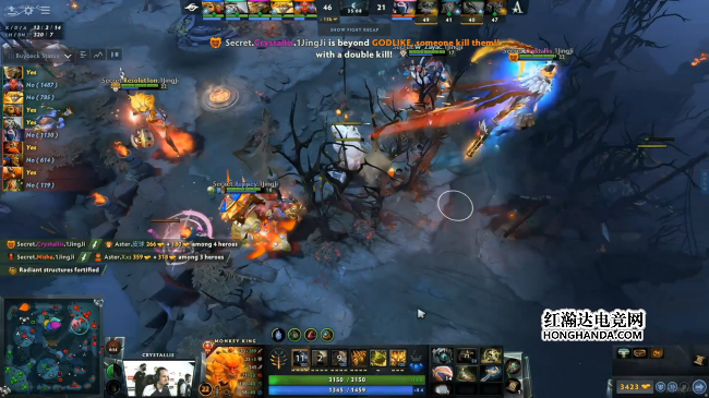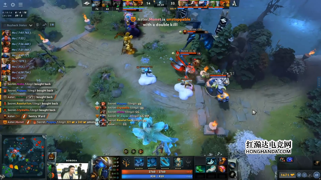 31分钟Secret带盾上高,蝙蝠跳拉将大圣拉至双子塔打掉不朽盾,然而大圣利用新墨镜效果一个棒击打地直接飞走,Secret血祭双辅助撤退。下一波双方开雾野区遭遇,Secret骑脸乱杀打灭Aster破掉中路高地。紧接着中路河道双方在开团,Aster先手秒打大圣情况下团战依旧不成正比,Secret团灭Aster后破掉上路高地。最终Aster亡命一波失败后敲出GG。