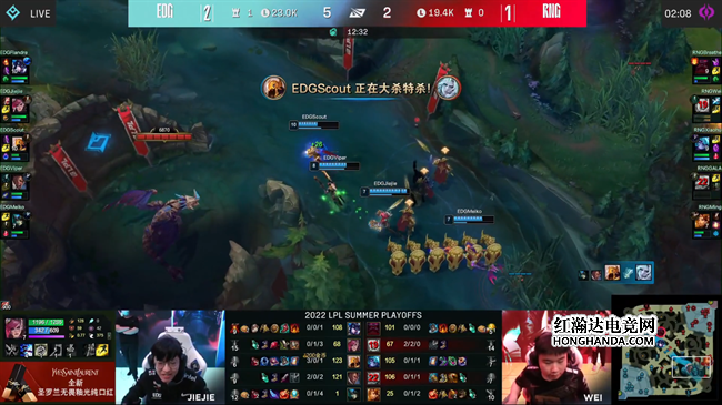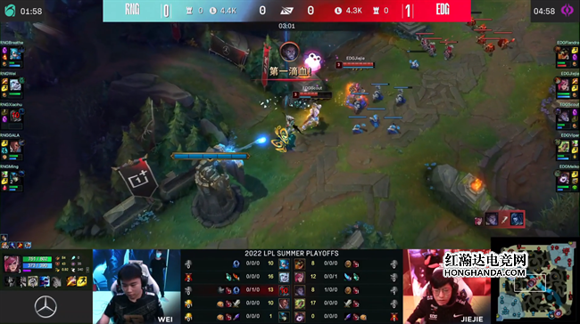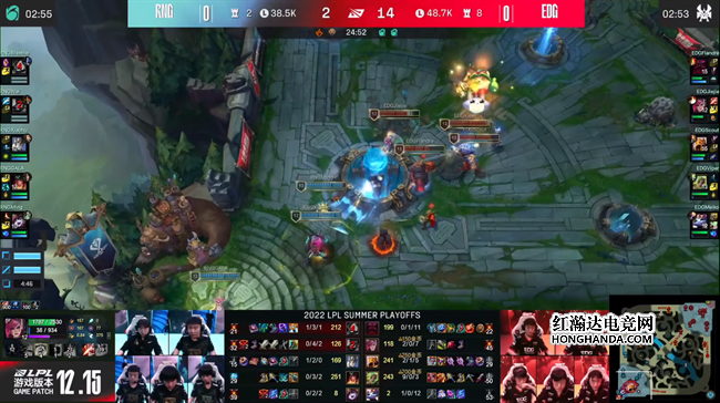 2022 LPL夏季赛季后赛第三轮,EDG战队对阵老对手RNG战队,两队目前都已获得了S12冒泡赛的资格,但是这场比赛的胜者将进入季后赛四强并且拿到复活甲,想要冲击更好的成绩,这场比赛对于两队来说都不容有失。从今天比赛的赛前准备到赛中发挥,EDG都完美地压制了RNG,凭借强大的团队配合3:1强势击败了对手轻松晋级。春季赛冠军RNG战队想要晋级S12只剩下了冒泡赛的最后机会。