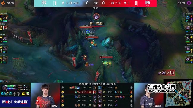 开局双方打野插在对方野区的视野都发现了彼此,因此谁也没找到绝佳的gank机会。OMG下路前期手握线权,佛耶戈得以控下风龙。盲僧见状选择gank上路,虽然被龙女插在河道的视野发现,但压线过深的龙女也被逼出了疾跑。
