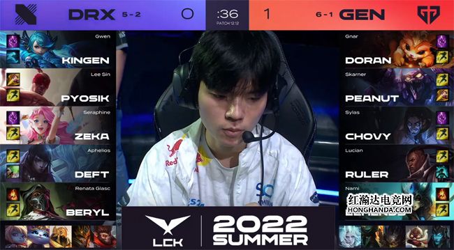 北京时间7月10日下午,LCK夏季赛第四周收官日的第一场比赛由Deft率领DRX对阵老队友Chovy所在的GEN!第一场DRX选出四保一大嘴体系,中期被GEN找到两波机会实现了翻盘,最终GEN连下两城2-0战胜DRX!