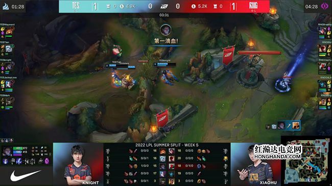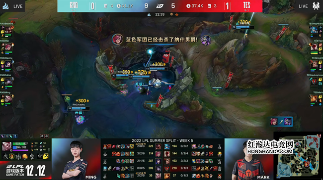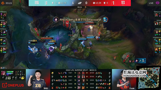 2022 LPL夏季赛常规赛第五周第六日,TES战队对阵RNG战队,这是两队继春决以后的首次交手。TES近期豪取六连胜状态火热,第一局RNG选出非常被动的大后期阵容,被TES行云流水的前期节奏直接打崩大比分碾压,第二局RNG改变思路选取强开阵容主动出击扳回一城。在决胜局里两边在中期打的非常焦灼,但TES一直牢牢把控着团战的主动权,最终在土龙魂决战里击败RNG,以2:1的比分赢下比赛,继续连胜步伐!