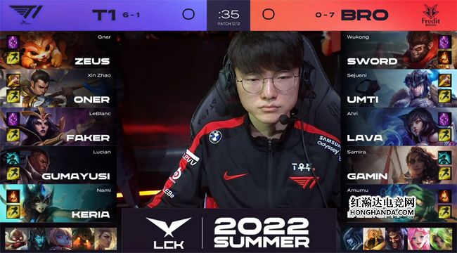 北京时间7月10日晚,LCK夏季赛第四周的收官战由7连败未获首胜的BRO挑战积分6-1的T1。首局Faker祭出招牌妖姬,在前期配合队友击杀了BRO打野猴子带起了节奏,中期团战又和Gumayusi的卢锡安融化了BRO的输出核心莎弥拉,最终带领T1速战速决2-0击败BRO!