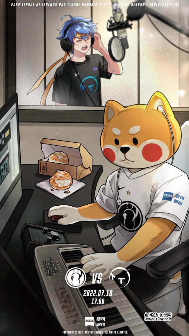 iG的海报标题为“调音师小i不停歇!”小柴犬化身“百万调音师”,正在为“一展歌喉”的TT蓝发少年调音,虽然工作难度较大,但好在有夜宵“泡芙”的陪伴~近期苦吞5连败的iG继续尝试“排列组合”,今天的下路换成Wink辅助Ahn,不知他们能否出奇制胜呢?