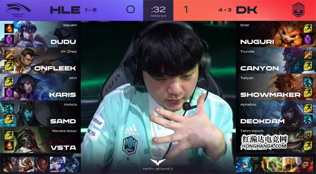 Canyon岩雀一打四怒砍双杀,DK团战制胜2-0击败HLE!