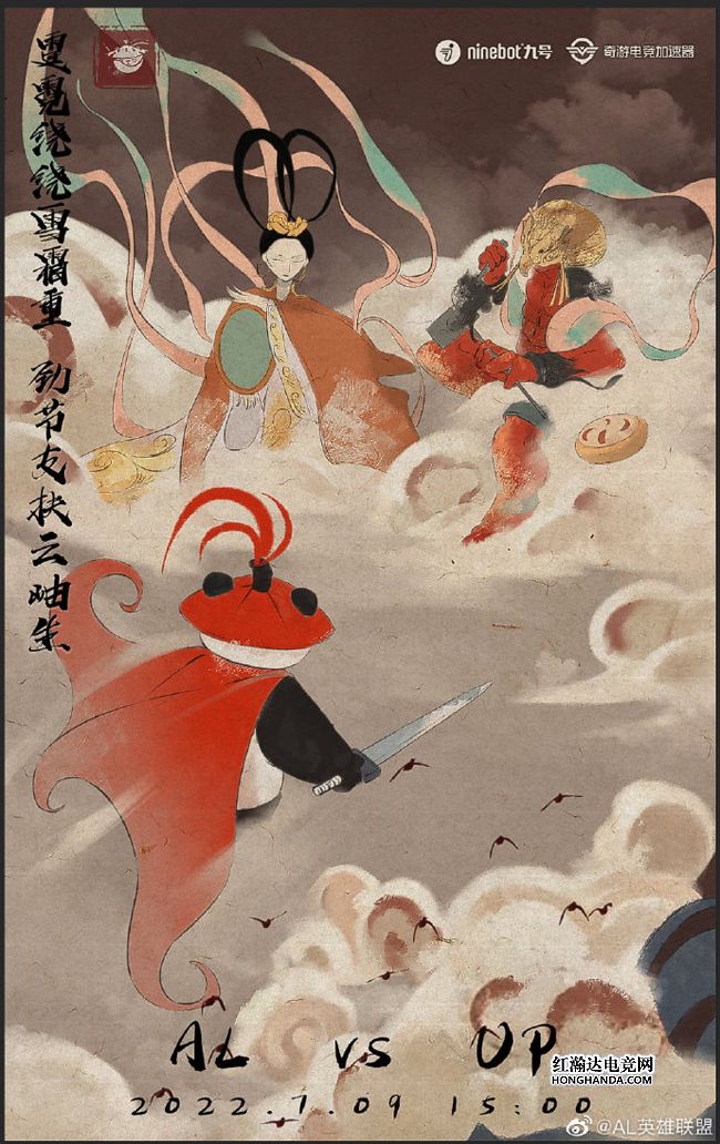 AL的海报标题是“风雨不动安如山”,对手UP的“幕后大佬”——雷公和电母正在云端“摸鱼”,AL的吉祥物侠客熊猫直接找上了门,今天UP恐怕没有“气氛组”了。AL在上一场比赛中让一追二掀翻了WBG,期待今天“热血小子”们的精彩发挥!