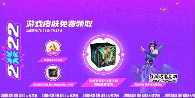 官方的第三波夺冠庆典活动将于7月16日开启,7月16日~7月24日活动期间,召唤师可通过活动免费领取龙魂水晶*1000、玉剑传说 苍鸾 莫甘娜皮肤(3天)、莫甘娜皮肤姿态,以及全球冠军杯夺冠庆典随机皮肤宝箱在内的丰富福利,可谓是福利满满。