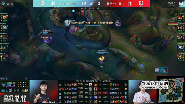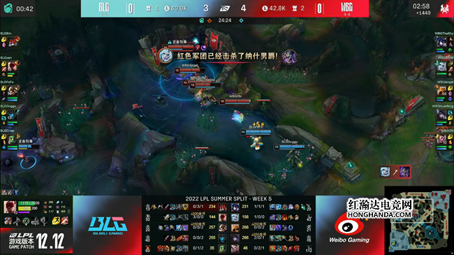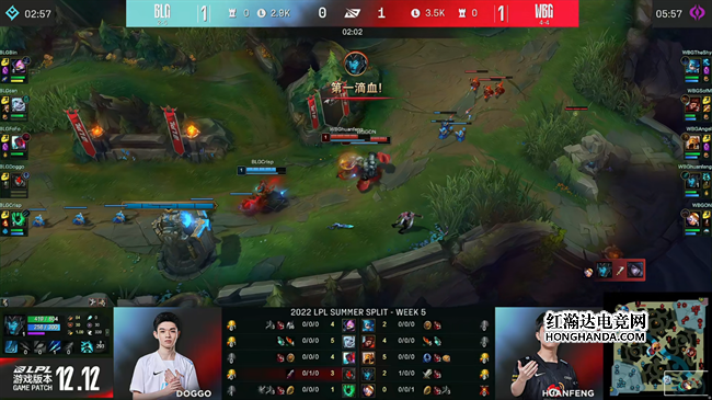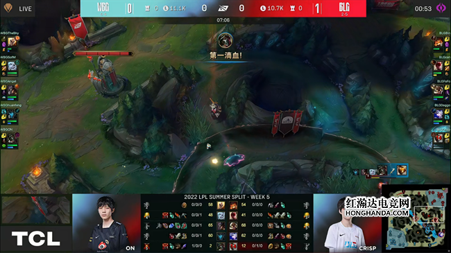 2022 LPL夏季赛常规赛第五周第六日,BLG战队对阵WBG战队,两队最近的状态都不是很稳定,BLG战队选择主动求变,让刚刚升上一队不久的打野小将can直接首发出场,不过仓促的换人还存在磨合上面的问题,WBG抓住机会完成了让一追二,2:1送给BLG第六败。
