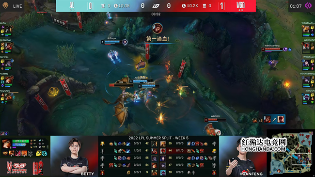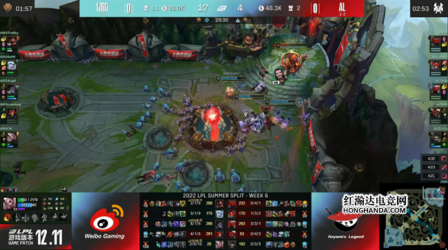 2022 LPL夏季赛常规赛第五周第二天,WBG战队对阵AL战队,在首局以较大劣势落败后,AL在二三局做出了迅速的战术调整,在前中期的进攻更加主动,而WBG在第二局科研BP失败以后状态明显下滑,屡屡被对手找到机会,最终AL在决胜局里完成了抢大龙一波逆转,让一追二击败了WBG。