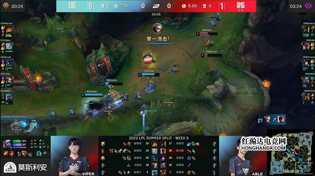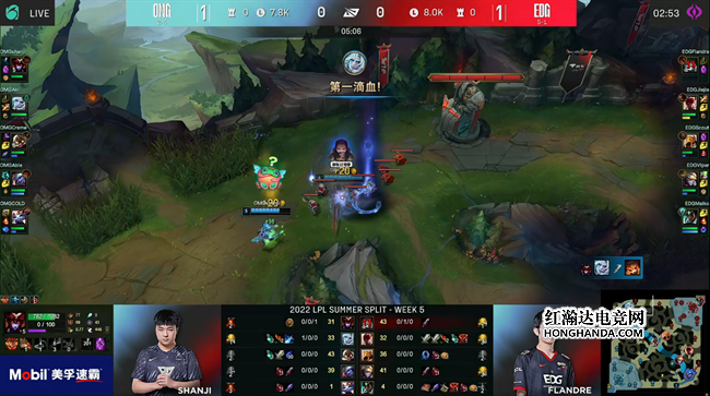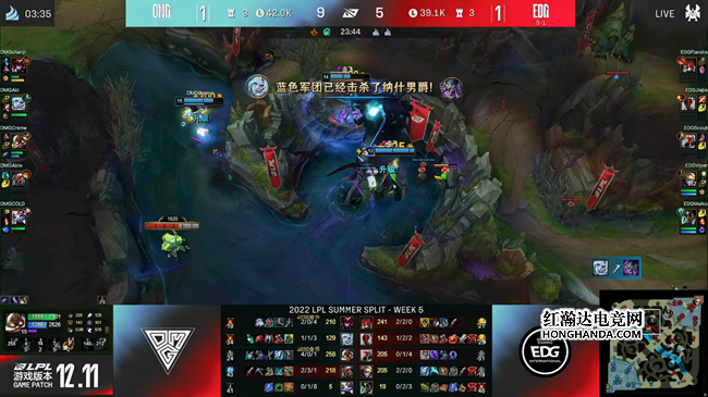 2022 LPL夏季赛常规赛第五周第一天,OMG战队迎战EDG战队,虽然OMG战队赛季初期战绩不佳,但他们在取得首胜以后最近的状态非常火热,通过独特的英雄池与华丽的团战打法,他们鏖战三局以2:1的比分击败了高高在上的EDG战队,延续了这场夏日风暴!