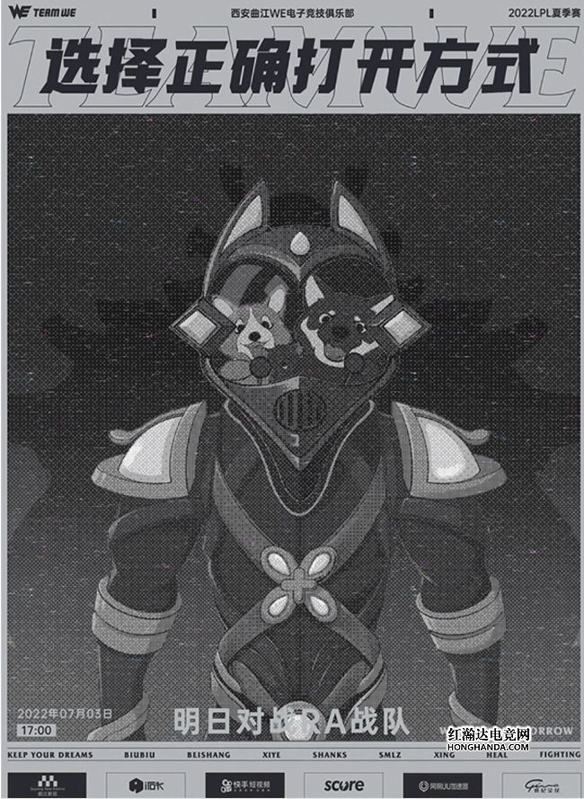 RA的海报标题是“Counterplay”(反击),紫色的稀有原子腐蚀了WE主场西安的马佣,RA的反击蓄势待发!和对手WE相比RA的最大优势在于已经拿到了夏季赛首胜,但近期遭遇3连败状态低迷,不知今天能否从状态更差的WE手中拿到第二胜?