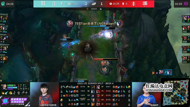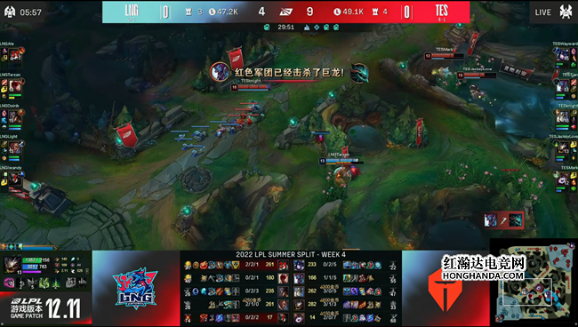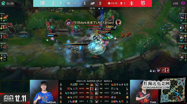 2022 LPL夏季赛常规赛第四周第二天,TES战队对阵LNG战队,LNG战队在连胜终结以后队员的状态一直不是很稳定,相比之下TES全员发挥都非常出色,双方的差距在团战的执行力上展现出来,TES通过几乎无懈可击的团战配合连下两局,以2:0击溃LNG,送给对手两连败。