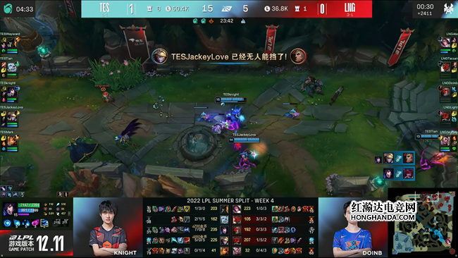 knight阿狸灵魄突袭1v3反杀两人,TES完美团战2:0横扫LNG
