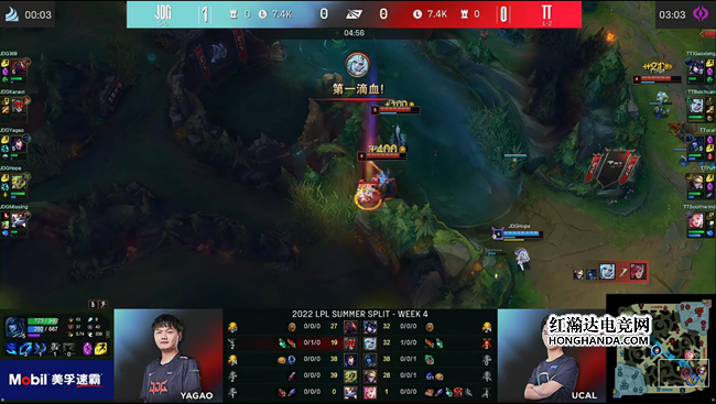 2022 LPL夏季赛常规赛第四周首日,目前五战全胜位居榜首的JDG战队对上TT战队,在首局前期JDG一路下路陷入劣势,但他们在中期更强的抓机会能力压制住了TT,最后以较大优势赢下首局。第二局TT前期依然取得了很大优势,并且连续两次团灭JDG,关键时刻Hope的泽丽和369的赛恩完美发挥砍下五杀,扭转了局势带领队伍赢下比赛!JDG 2:0击败TT豪取六连胜。