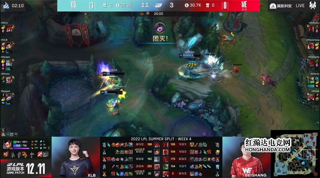 北京时间6月28日,LPL夏季赛第四周第二天的首战由开赛至今苦吞3连败的WE挑战4战全胜的V5!第一局V5从下路打开了突破口,三线全面压制了WE,大龙出生前WE中路水晶早早失守,V5送给了WE“玲珑塔”,最终2-0击败WE豪取5连胜!