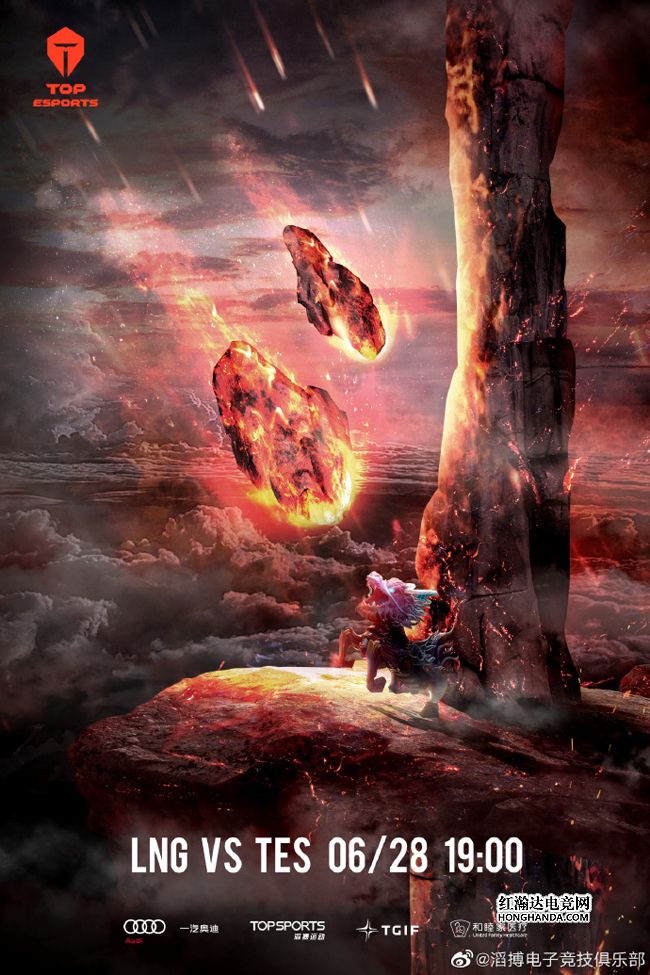 TES的海报标题为“斗”,天空中的陨石纷纷落下地面,火光照亮了在大树下躲避的小麒麟,一块陨石直冲麒麟而去,暗示今晚LNG在劫难逃。TES近期豪取4连胜状态火热,并且只比暂居第2的V5少一小分,因此今晚有望同V5争夺积分榜第二名的位置,究竟是LNG强势终结TES四连胜,还是TES送给LNG两连败呢?让我们拭目以待!
