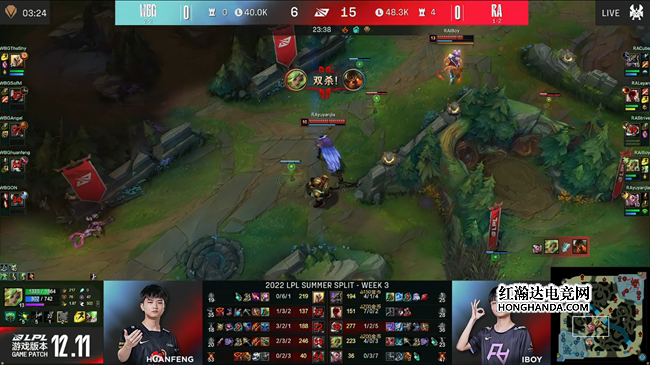 Huanfeng泽丽超限爆闪击穿敌阵,WBG让一追二2:1战胜RA