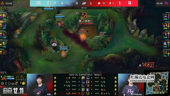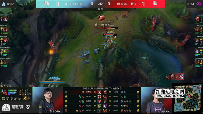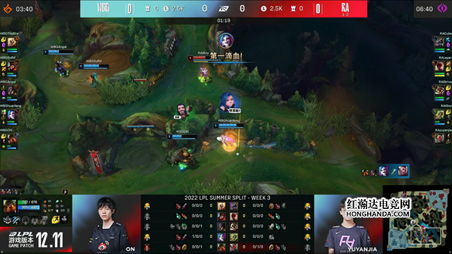 2022 LPL夏季赛常规赛第三周第六天,WBG战队对阵RA战队,首局因为前期劣势惨败以后WBG迅速做出调整,通过第二局的半球流阵容打开局面扳回一城,决胜局WBG更是换上功勋辅助SwordArT,S10亚军四人组再度集结,围绕上路TheShy步步为营拿下了比赛胜利,以2:1的比分战胜RA!
