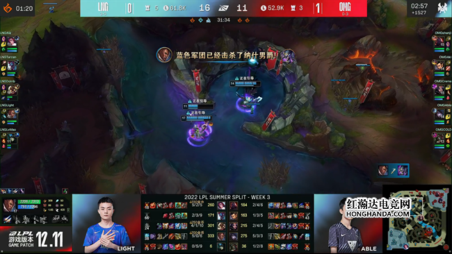 Able卡莎猎手本能无畏冲阵,OMG以下克上2:1爆冷掀翻LNG