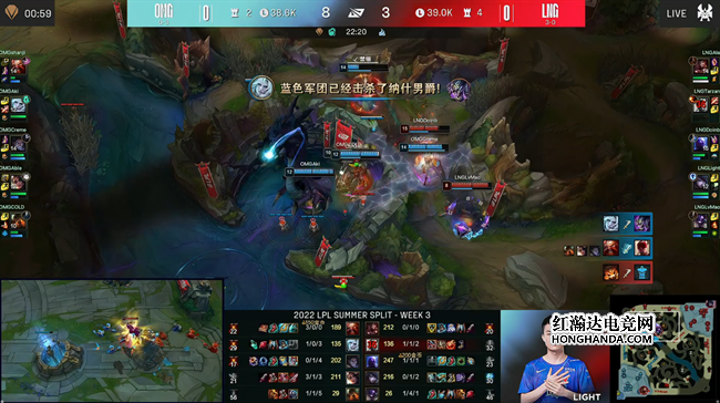 2022 LPL夏季赛常规赛第三周第五天,三连胜的LNG战队对阵三连败的OMG战队,然而比赛的内容大大出乎了人们的预料,未尝一胜的OMG在今天的比赛里带来了令人惊艳的表现,尤其是团战的配合无可指摘,最终以2:1的比分击败了LNG战队,完成了励志的以下克上。
