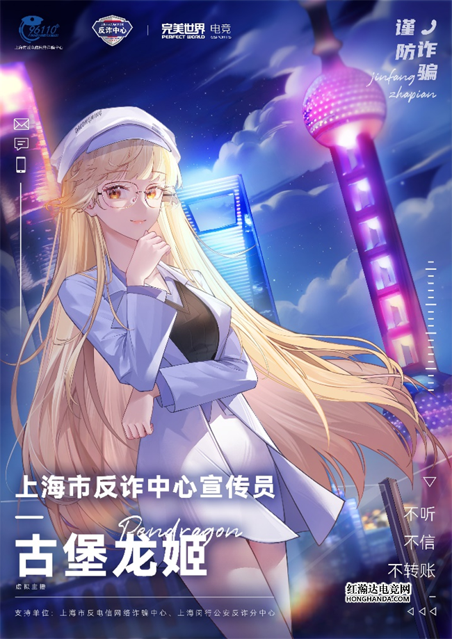 古堡龙姬自出道以来,凭借感染力十足的嗓音、气质亲和的形象,优越卓绝的游戏技术力以及专业超群的整活能力,迅速获得了年轻用户的喜爱。在她身上拥有许多称号:“完美世界电竞旗下首位游戏虚拟主播”、“CS:GO国服看板娘”等等。但“上海市反电信网络诈骗中心宣传员”这一称谓对她而言意义重大,因为这体现了她自出道至今始终坚持的初心:作为一位公众人物,她愿意把自己所拥有的资源分享给有需要的人,并以身作则,让正能量影响到更多年轻人的成长。在不到2年的时间里,通过对专业的不断钻研,持续产出优质的直播和视频内容,不断为社会各界传达正能量,陪伴年轻人度过更有价值的欢乐时光。这次与上海市电信网络反诈中心的合作,堪称一次完美的契合:率先达成首位虚拟主播与公共公益事业单位的跨次元合作,实现了真正的次元跨越与融合,并带来良好的社会反馈,打开了反诈等公益宣传的新思路。