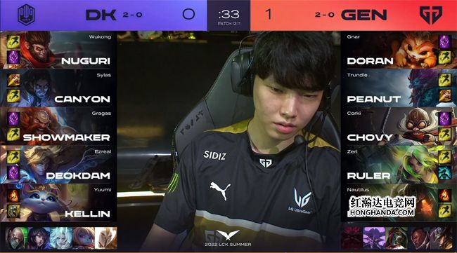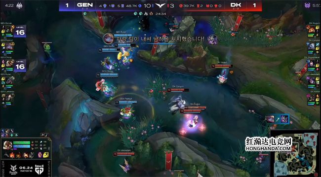 北京时间6月22日,LCK夏季赛第二周的揭幕战由GEN对阵DK!两队都打出了2连胜,可谓旗鼓相当的对手。第一局GEN辅助Lehends选出了绝活炼金,帮助队伍带飞了前期节奏,中期DK的三poke体系稳住了局势,不料炼金抢到了大龙,最终GEN以2-1击败DK收获三连胜!