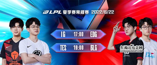 北京时间6月22日,LPL夏季赛第三周的赛程继续进行:5点的第一场为“S赛冠军之争”——S8冠军iG、S11冠军EDG一较高下;第二场由BLG对阵TES,icon夏季赛首秀直面knight!