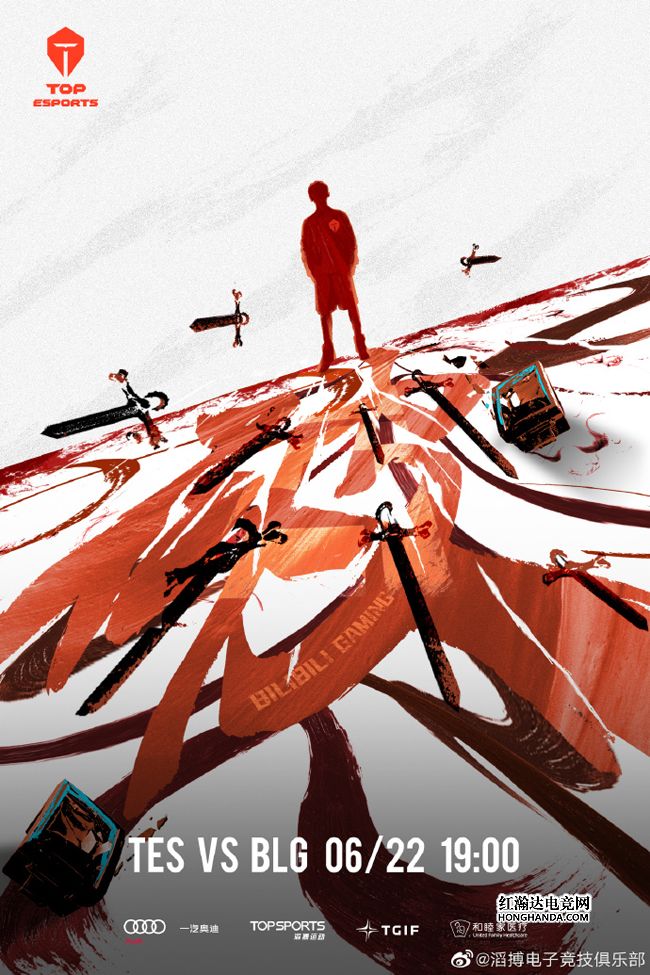 TES的海报标题是“破”,身穿TES队服的神秘男子脚下有一个巨大的“破”字,他的周身悬浮着多把长剑,准备送BLG一记凌厉的“万剑归宗”。积分2-1的TES近期迎来2连胜状态火热,如果今晚获胜将取代RNG第4名的位置,或许滔博哥这赛季就不需要“北伐”了。