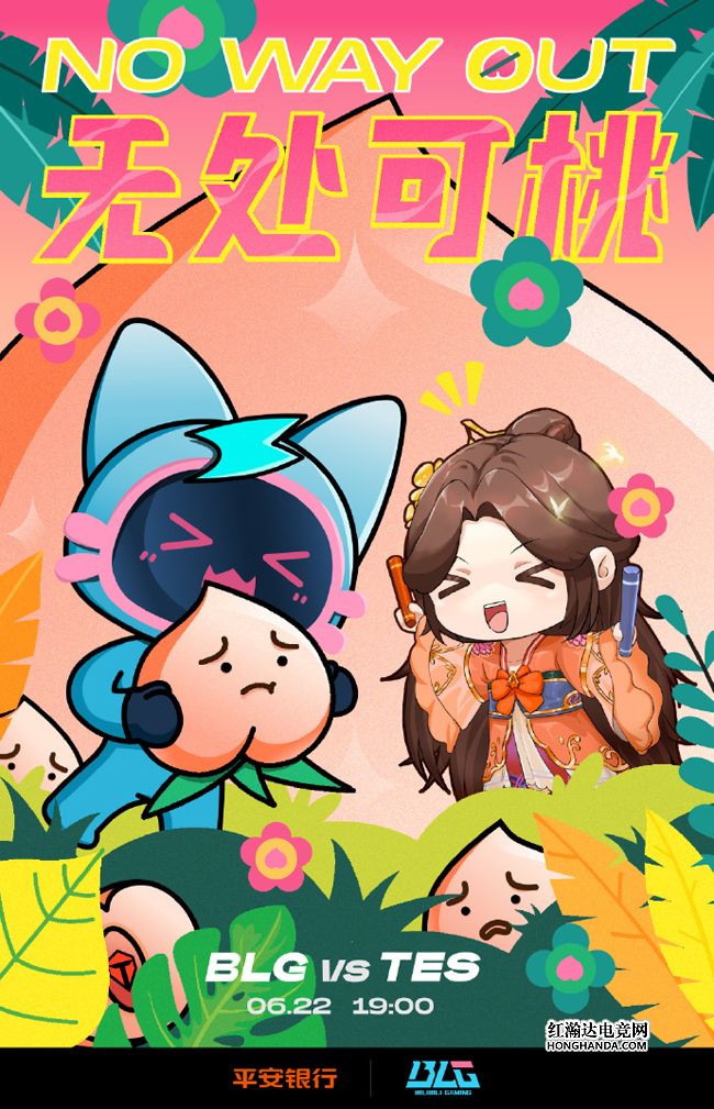 BLG的海报标题为“无处可桃”,BLG的吉祥物“电视喵”已经抓到了一只水蜜桃,躲在草丛的水蜜桃们恐怕也是插翅难飞。BLG在前三场比赛中只拿到了首胜,因此于6月18日官宣引入自由人,去年LNG的中单icon,今晚将是冷少的夏季赛首秀,期待icon的精彩发挥!