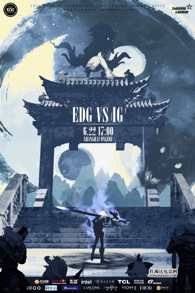 EDG的海报标题为“心神合一,大道无‘極’”,海报中S11冠军皮肤们的站位依旧是佛耶戈主C,剩余四人在“OB位”~远处的牌楼后方是巨型太极图,佛耶戈将先行出战,同iG好好切磋一番。两队上一场比赛都未能获胜,不知今天哪支队伍的状态更胜一筹?