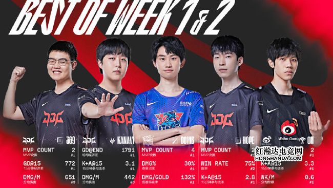 2022LPL夏季赛第二周已经落幕,LPL赛事官方公布了第一周&第二周的最佳阵容,最大赢家JDG独占三席:369、Kanavi、Hope,LNG的Doinb则包揽了最佳中单和MVP!最佳辅助是WBG的“弱爆小子”ON。V5新人中单Dream荣膺最佳新秀!