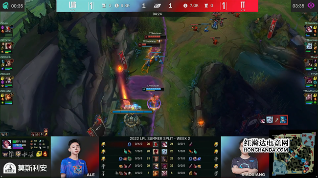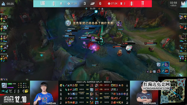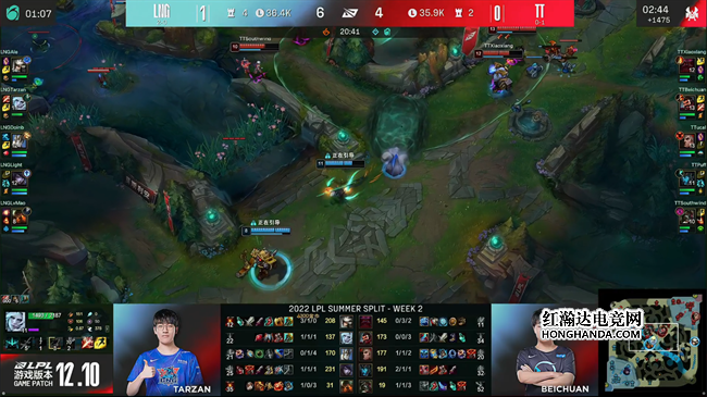 2022 LPL夏季赛第二周第七天,LNG对阵TT战队,TT针对前期的战术布置取得了不错的效果,而LNG也在第二局前期还以颜色,双方在中后期都经常出现决策和发挥的失误,让整个BO3变得非常胶着,最终LNG在决胜局里鏖战40分钟艰难击败TT保住了他们的连胜势头。