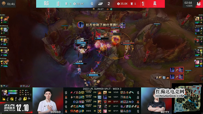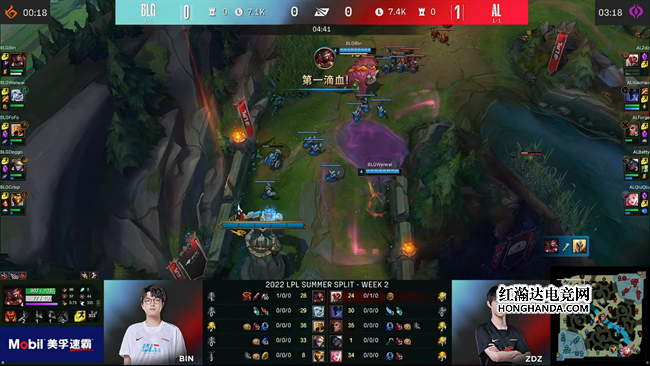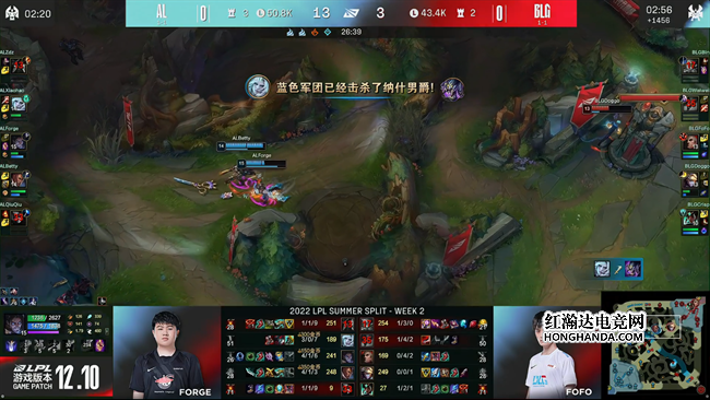 2022 LPL夏季赛第二周第七天,AL战队对阵BLG,第一局BLG的阵容非常缺乏控制手段,被AL找到机会滚起雪球以后全程压制所击败,第二局调整了战术的BLG通过巴德的出色发挥在前中期一度取得了很大优势,但他们在中后期团战的发挥出现严重问题,被AL找到机会完成翻盘,最终AL以2:0比分掀翻BLG取得胜利!