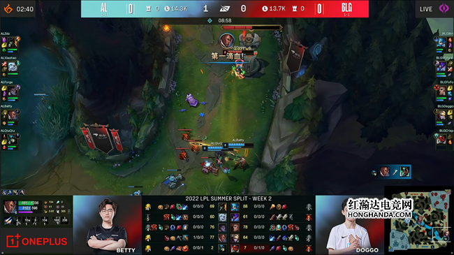 Betty赛娜背靠二塔孤胆1v3,AL顽强翻盘2:0战胜BLG