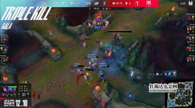 初登夏季赛舞台的RNG节奏暂时落于下风,只能击杀了峡谷先锋作为止损。天使在上路肆无忌惮地压制船长,虽然被丽桑卓游走抓了一波,但FPX也抓中得手,带走了佛耶戈并控下火龙完全不亏。15分钟FPX上、中两开花:中野辅在上路河道埋伏秒掉了丽桑卓,天使趁机单吃了上路一血塔。Xiaohu地丽桑卓刚刚复活又被FPX中野抓死,RNG地中路一塔随之告破。大龙出生前RNG付出上路二塔加中路高地塔的代价才控下水龙,FPX经济领先4千。